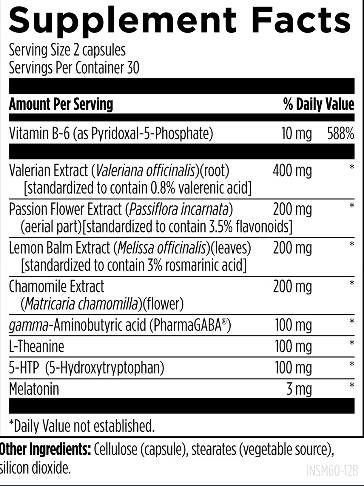 ✅ Уникальный состав: Каждая порция (2 капсулы) содержит валериану (Valeriana officinalis) 400 мг, пассифлору 300 мг, мелиссу лекарственную 300 мг, ромашку 200 мг, хмель 200 мг, ГАМК 250 мг, L-теанин 100 мг и мелатонин 3 мг — синергетическая комбинация для поддержки ГАМК-ергической системы, снижения кортизола и естественного ритма сна. Состав дополнен гипромеллозой (капсула) и микрокристаллической целлюлозой. Произведено в США, протестировано на чистоту и безопасность.