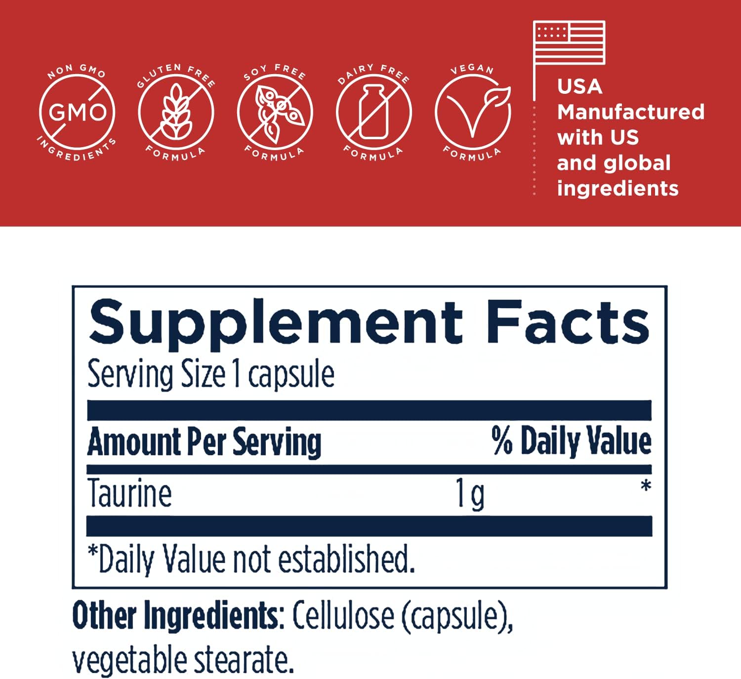 ✅ Уникальный состав: Каждая капсула содержит 1000 мг чистого таурина — условно незаменимой аминокислоты, важной для осморегуляции, стабилизации мембран клеток и конъюгации желчных кислот. Состав дополнен гипромеллозой (капсула), микрокристаллической целлюлозой и аскорбил пальмитатом. Произведено в США, протестировано на чистоту и безопасность.